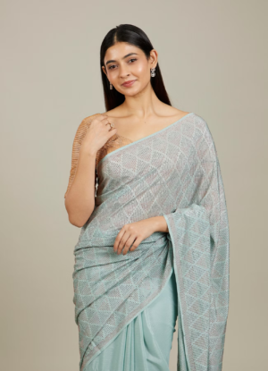 PRODUCT DETAILS ColourBlue MaterialChinon WorkStone Work Items IncludedSaree , Unstitched Blouse Fabric Wash CareDry Clean Only DescriptionUncover a world of