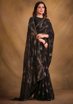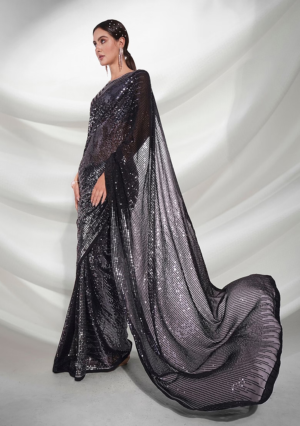 Black Sequin Embroidered Pure Georgette Saree Set – XSR06598 Main Color: Black Package Contents: 2 Components: Saree, Blouse Fabric: Pure